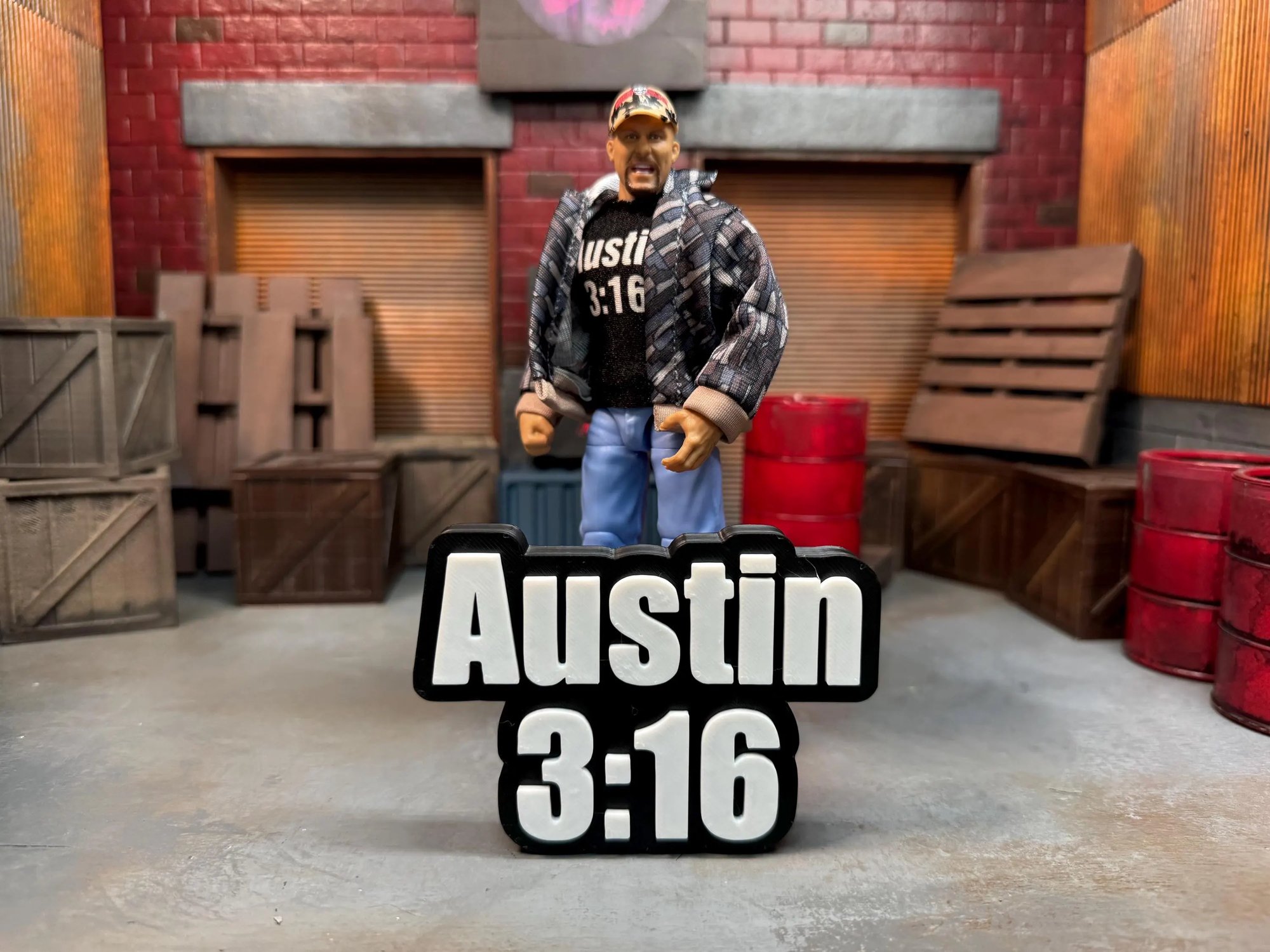 Want to add some flair to your Wrestling Figure Display? Look no further! This stand is 3d Printed in multicolor and stands well! See other photos for scale!